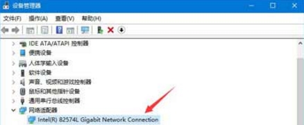 6、这时会打开设备管理器窗口,双击打开网络适配器一项,找到正在使用的网络驱动。如图所示: