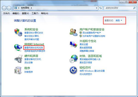 2、在控制面板中将查看方式修改为“类别”;如图所示: